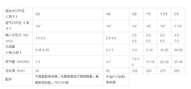3、1.5寸射流器以下尺寸射流器自帶單向閥。2寸單獨配一個單向閥(6分PVC材料)